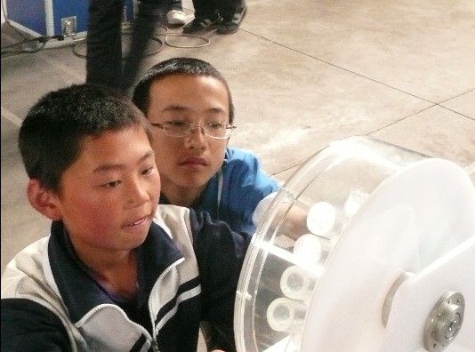 张掖市科技馆、甘州区科协在“六.一”儿童节来临之际,组织“科技馆进校园”活动来到张掖铁路学校,师生们聚集在“科技大篷车”展示的“磁力线演示器”、“锥体上滚”、“人体导电”二十多件科普展品前,体验交流,充分享受着科普的快乐。