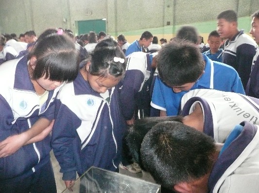 “科技大篷车”进入校园后,利用科普实物演示和科普展板,向师生展示科技原理,宣传科学知识。同学们不用走出校园就参观到了许多奥妙无穷的科技展览,并亲自动手操作实践。他们亲自动手操作,踊跃提出问题,奇妙的试验现象让大家发出阵阵惊叹声。科协领导和学校王校长与同学们共同体验,还有不少学生戴着3D眼睛在科普知识展板前驻足观看,为逼真的海洋生物、太空景象、古脊椎动物所吸引。活动的成功举办,对激发学生学科学、用科学、爱科学的热情,启迪创新学生思维,提高学生科学素养起到了积极的作用。