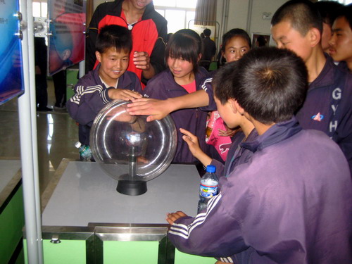 高科技的展品吸引了山区孩子的眼球