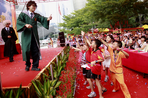 当天活动的高潮,当属由广州青少年科技馆代表队伍带来的《魔法学院入学记》,其向观众展示“魔法学院”中各类神奇的魔法,当台上小朋友揭示了魔法的奥秘时,台下小朋友恍然大悟之时也报以热烈的掌声。据悉,《魔法学院入学记》是由广州青少年科技馆自编自导的节目,该节目以科技馆的的科普资源为依托,召集馆校共建学校的学生参与演出,在科技辅导员的带领下编排完成。