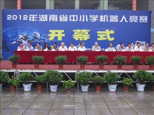 湖南省科协党组成员、副主席廖任强宣布2012年湖南省中小学机器人竞赛开幕。参加开幕式的领导和嘉宾饶有兴致地观看了竞赛,欣赏了参赛选手们的精彩表演。