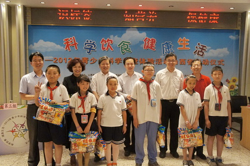 5月18日下午,在山西省广播电视台两名主持人和山西省食品工业研究所高级工程师张红旗、山西医科大学公共卫生学院副教授程景民的带领下,200余位来自太原外国语师范学院第三附小的小学生共同参与了一场“识标签、知营养、保健康”的互动游戏,同时拉开了“科学饮食、健康生活—2012年青少年科学调查体验活动”的帷幕。教育部基础教育一司、共青团中央学校部、中国科协青少年科技中心有关部门的负责同志参加了山西省青少年科学调查体验活动的启动仪式。