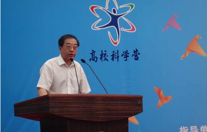 图为上海市科协巡视员钱之广宣布2013年青少年高校科学营上海科学营闭营