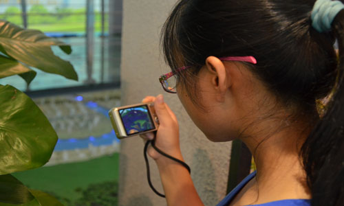 在讲解员的带领下,营员们参观了馆内的“国家战略、顶层设计、阶段成果、未来展望”四个主题展厅。其中,在“国家战略”厅,营员们在LED屏前观看了长株潭以及周边地区的发展规划,对两型社会有了初步的了解。在“未来展望”厅,有两型城市畅游、两型家庭畅想、低碳计算器、垃圾分类游戏等互动展项,营员们通过亲自体验切身感受到“两型社会”建设对人们衣食住行的积极影响。营员们在展馆内神秘的弧幕影院内观看了关于生态保护的宣传片,了解到地球当前的生态环境,坚定了营员保护环境的决心。