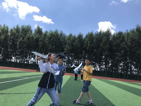 孩子们都喜欢玩飞机,幻想自己像鸟儿一样无忧无虑地遨游天空,比一比谁组装的飞机飞得高飞得远,经过一次两次的尝试,有的学生发现了许多问题比如:1.为什么飞机起飞的时候逆风比顺风飞得高?2.将机翼放在机身的什么位置最合适?3.如果飞机盘旋地向下栽应该怎么调整尾翼偏转方向?从而能够更好地滑翔,以便保持更长的滑翔时间。