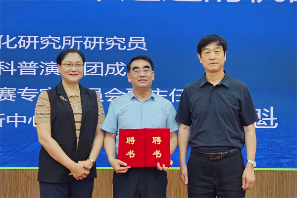 为更好的发展科创工作,进一步提升科学文化素养,为学生带来前沿的科学知识和科技体验,特聘请原魁教授担任河北省科技文化场馆联合体特聘专家、河北省老科学技术工作者协会智库专家、石家庄外国语教育集团科技专家,河北省老科协、石家庄外国语小学领导分别为原魁教授颁发了聘书。