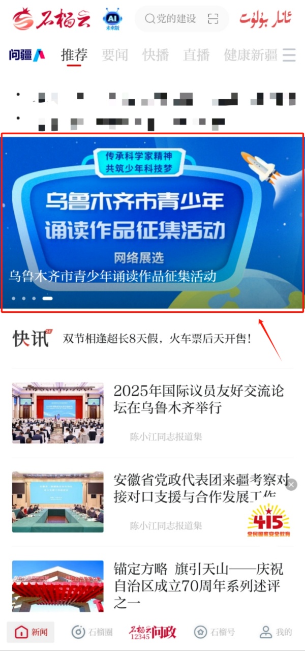 第二步,打开石榴云客户端首页,进入活动专区,为心中的最佳诵读作品助力!展选期间,每个用户每日可给每件作品助力一次。