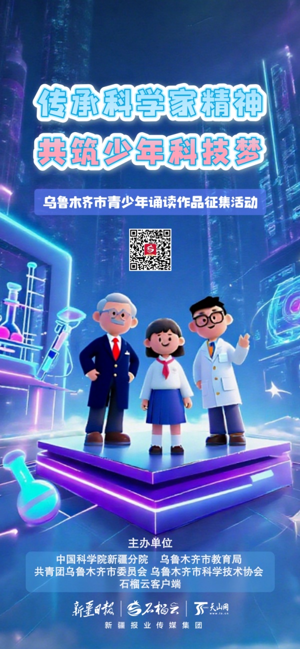 星辰大海的征途,从聆听科学家的故事开始!为庆祝自治区成立70周年,中国科学院新疆分院、乌鲁木齐市教育局、共青团乌鲁木齐市委员会、乌鲁木齐市科学技术协会、石榴云客户端联合开展“传承科学家精神 共筑少年科技梦”乌鲁木齐市青少年诵读作品展选活动。
