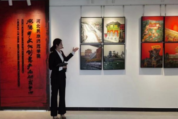 一、河北民族师范学院承德市文化创意产品研发中心,于2022年建立,位于河北民族师范学院产教融合大楼,专职科普人员10人,兼职科普人员20人。下设八个非遗工作室(漆艺术研究中心、满族刺绣创新工作室、滕氏布糊创新工作室、陶瓷陶印工作室、丰宁铁艺灯笼创新工作室、丰宁剪纸创新工作室、玉雕工作室、泥塑与综合材料工作室)、两个设计工作室(一片林设计顾问工作室、数字媒体工作室),共十个工作室,还有学术报告厅、直播间、VIP会客室,占地面积2400多平方,场地和设备一直在更新。其中漆艺术研究中心漆艺设备高端前沿,被业内专家定位为“河北第一,全国前五”。这十个工作室既各具特色,又相互融合,使得中心成为具有特色鲜明、地方文化浓厚的产、学、研、创、用一体的文化创意产品研发示范基地。