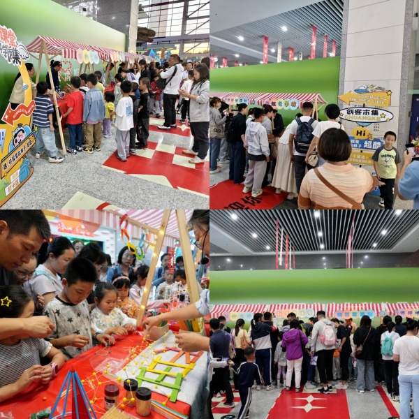 匠心创客市集体验区人气高涨,将“夜市”搬进科技馆,涵盖数学、物理、化学、生物与4D创意搭建五大主题区。每个摊位都是微型探索乐园,孩子们可看可摸可体验,在探索中收获乐趣。