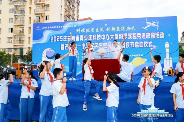 9月23日上午,全国科普月云南省主场活动期间,以“科技改变生活 创新赢得未来”为主题的云南省青少年科技中心大型科学实验秀进校园活动首站走进德宏州芒市第一小学,此次活动是2025年全国科普月云南省主场系列活动的重要活动之一。液氮冻球、液氮大喇叭、液氮云雾 、2米长塑料袋火箭等“硬核”项目轮番登场,全校2500多名师生的欢呼声、惊叹声此起彼伏,校园瞬间变成科学狂欢现场。