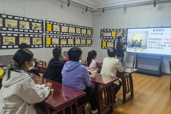 活动现场,馆内工作人员以画面生动的短片为载体,还原了郭守敬编制《授时历》时的精密测算、修建通惠河时的巧思谋划,也展现了张衡发明地动仪的创新突破、祖冲之计算圆周率的执着钻研。再辅以详实的图文讲解,古代科学巨匠的生平故事与卓越科技成就,化作一幅幅鲜活的历史画卷,在孩子们眼前缓缓铺展。