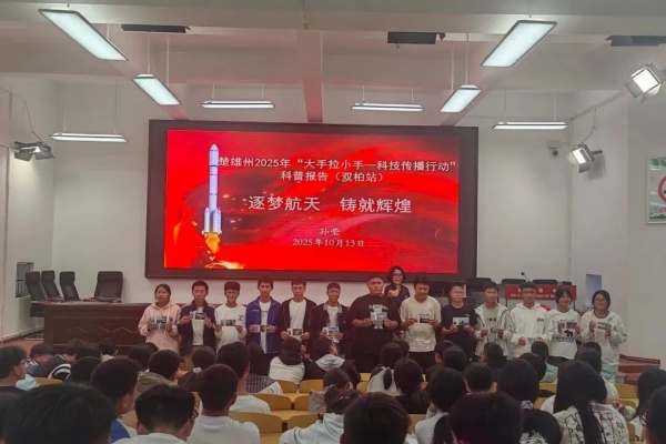 10月13日,由省科协、省教育厅、中国科学院昆明分院联合举办的2025年“大手拉小手—科技传播行动”科普报告团走进双柏,为双柏一中和妥甸中学的同学们带来了一场兼具知识性与趣味性的科普盛宴,助力我县青少年科技创新后备人才培养和科学素质提升。