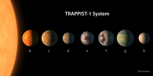 TRAPPIST-1系统中七颗类地行星的模拟画面