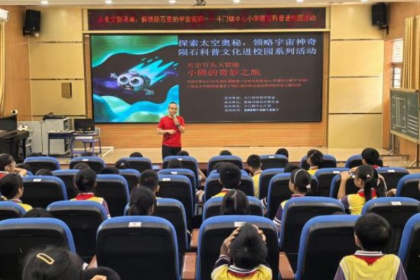 为激发学生对宇宙探索的兴趣,10月13日,由珠海市斗门区科协主办的“陨石科普文化进校园”系列活动走进斗门镇中心小学,以“太空石头大冒险,小陨的奇妙之旅”为主题,为全校师生带来一场沉浸式的宇宙科普盛宴。从星空到课桌,解锁陨石里的宇宙密码。