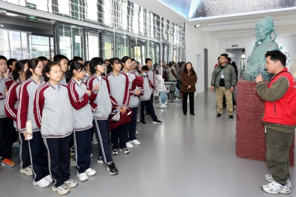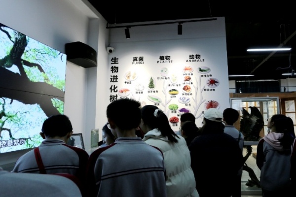 步入自然馆与地质馆,仿佛踏入了一个浓缩的自然宇宙。形态各异的生物标本静默陈列,熠熠生辉的矿物晶体错落有致,每一件展品都仿佛在低语着地球亿万年的沧桑变迁。在一块呈辉纹状的重晶石晶体前,志愿者驻足讲解:“它的形成,与剧烈的地质运动和复杂的化学作用息息相关,是大自然鬼斧神工的杰作”。 同学们围拢倾听,目光专注,神情中写满好奇与思索。每当讲解间隙,便有同学迫不及待地举手发问,问题层出不穷,思维的火花在展厅中碰撞。志愿者们始终耐心解答,用通俗而生动的语言,将深奥的自然奥秘与地质现象娓娓道来。一问一答之间,科学的种子悄然播撒,同学们的好奇心被彻底点燃,探索自然的热忱也在心中悄然生长。