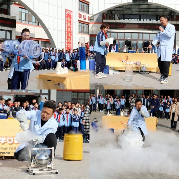 最让同学们兴奋的是气体炮和干冰升华实验。气体炮通过压缩空气产生的推力发射“炮弹”,生动演示了动力传递的原理;而干冰升华实验则利用固态二氧化碳(干冰)在常温下迅速升华,吸收大量热量,使周围空气中的水蒸气凝结成细微的水滴,从而形成如梦似幻的白色雾气,在展示物质相变(升华和凝结)这一物理过程的同时,也营造出震撼的视觉效果。
