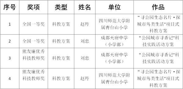 成都市获奖名单