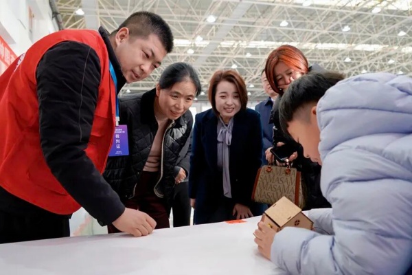 ▲与会领导在比赛现场与选手交流
