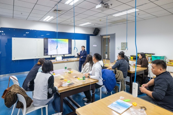 本次培训以“理论讲解+实操案例”为核心模式,围绕四大维度精准设计内容,推动创新教育理念与教学实践深度融合。其一,聚焦创新方法与前沿趋势,解读新课标及人工智能背景下科学教育发展路径,为教师明确技术赋能教学方向;其二,强化AI应用能力,开设开源硬件实操课程,助力教师在实践中掌握AI教学技能;其三,破解教研论文写作难题,以大科学教育为切入点,针对性解决教师“研而不发”的选题痛点;其四,搭建跨学科实践平台,通过主题工作坊,由专业导师指导教师完成走马灯制作、手抓球实验、智能语音台灯开发等项目,同时创新采用直播互动形式,联动农村学校开展线上工作坊,同步实操与答疑交流,现场参与氛围热烈,得到了老师和学生们的一致好评,有效拓宽了培训覆盖面与辐射力,提升了跨学科教学实操能力。