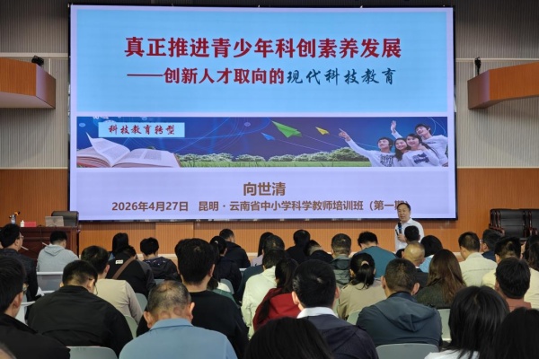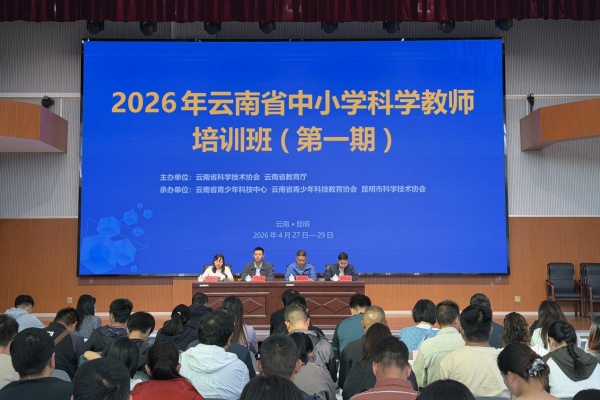 4月27日—29日,2026年云南省中小学科学教师培训班(第一期)在昆明举办。本次培训由省科协、省教育厅共同主办,省青少年科技中心、省青少年科技教育协会及昆明市科协联合承办,来自全省16个州(市)的120余名一线科学及科技骨干教师参训。
