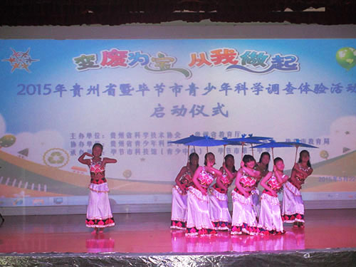 启动仪式在毕节一中屈晓峰校长的致辞中正式拉开了序幕;毕节市教育局副局长谢祥贵出席启动仪式并作了声情并茂的讲话,谢祥贵副局长通过生动的实例向同学们解读了乱扔废物的危害及变废为宝带来的好处;毕节市人民政府市长助理王建峰同志在讲话中,鼓励青少年要更好地学习和理解变废为宝的意义,掌握科学的调查方法;毕节一中学生代表宣读了活动倡议书;贵州省科协钱斌副主席宣布活动启动。启动仪式上,学生还作了文艺表演,精彩的演出赢得了大家的阵阵喝彩和热烈掌声,特别是学生使用旧窗帘布做衣服、旧衣服改小衣服的时装秀将现场气氛推向了高潮。