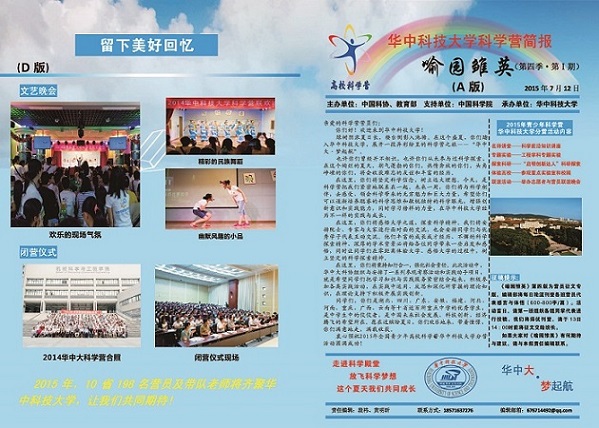 衷心预祝2015年全国青少年高校科学营华中科技大学分营活动圆满成功!