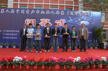 2008年5月9日—11日,由省科协、省教育厅、省科技厅、团省委、省妇联共同主办,由辽宁省青少年科技活动中心、大连市西岗区教育局、西岗区科协、大连市西岗区中小学综合素质教育中心共同承办的第八届中国青少年机器人联赛(辽宁赛区)在大连市西岗区中小学综合素质教育中心成功举办。比赛举行了隆重的开幕式,省科协副主席于明才出席大赛并致开幕词,大连市教育局、大连市科协领导分别致欢迎词。青少年和老师的代表讲话,中山区中心小学的学生向大会做了献词。出席大赛的还有其他相关部门的领导,以及辽宁省、大连市的多家新闻媒体。来自全省14个市的384名青少年,131个队参加了6大项15个单项的比赛,进行了紧张激烈的角逐,共决出: 1、智能机器人竞技比赛: (小学组)一等奖12、二等奖12、三等奖14项。火炬传递。 (初中组)一等奖3、 二等奖3、 三等奖3项。 投球比赛。 (高中组)一等奖3、 二等奖4、 三等奖4项 福娃登长城。 2、青少年机器人设计成果展示与评审 (小学组)一等奖12、二等奖12、三等奖14项。 (初中组) 二等奖1、 三等奖2项。 (高中组)一等奖3、 二等奖3、 三等奖4项。 3、青少年机器人足球杯比赛 (2VS2) (小学组)一等奖3、二等奖7、三等奖8项。 (初中组)一等奖3、二等奖4、三等奖4项。 (高中组)一等奖4、二等奖6、三等奖4项。 4、FLL机器人世界锦标赛辽宁赛区比赛(主题:破解能源) (高中组)一等奖1、 5、FVC机器人工程挑战赛辽宁赛区比赛(主题:桥梁战斗) (小学组)一等奖1、二等奖1、三等奖2项。 (初中组)一等奖1、 6、3D仿真虚拟机器人竞赛(新增项目)的比赛。 (小学组)一等奖16、二等奖16、三等奖17项。 (初中组)一等奖7、二等奖7、三等奖7项。 (高中组)一等奖1、二等奖6、三等奖4项。 组委会为获奖者颁发了金、银、铜牌,并对各单项的冠军、亚军、季军分别颁发证书和奖品,并评选出了20个队为优秀组织单位,颁发了奖杯。 本届比赛的项目的设置均遵循全国青少年机器人大赛的规则,力争为青少年营造一个公平、公正、公开的竞赛氛围。通过比赛,各竞赛项目中冠军获得者(共15个队)将组成辽宁代表团参加全国比赛;本届比赛与往届相比,参加人数多,我省每年参赛人数以30%的速度增长。并且参与面广。各项目和各组别均有青少年参与,此项活动越来越受到广大青少年机器人爱好者的欢迎和社会各界的关注。特别值得一提的是我省首个农民工子第学校沈阳市沙山四校,该校有学生540人,农民工子女占88.5%。得到省、市的亲切关怀和社会各界的热情支持。学校重视科技教育,积极开展机器人活动,本次比赛该校有足球4个队、竞技4个队、创意1个队、FVC3个队27人次参加。并取得好成绩。学生家长动情的说:“我们的孩子和城市的孩子不仅获得同样的教育条件,更得到了高科知识的熏陶和实践能力的锻练,真正体验到了党的关怀和社会的温暖,我们会更加放心的投入到城市的建设中来”;为了推动全省机器人活动的深入发展,从本届开始,还增加了3D仿真虚拟机器人竞赛项目,以普及和推广机器人活动,使更多的青少年参加到科技活动中来。 为了迎接全国大赛,获得各单项冠军的学校正积极的训练,准备参加全国比赛,并努力争取获得好成绩。目前,我省青少机器人年活动生机勃勃。我们将借全国大赛的东风推动青少年科技活动再上新台阶。为培养青少年的创新精神和综合实践能力,全面提高青少年的科学文化素质发挥积极作用。