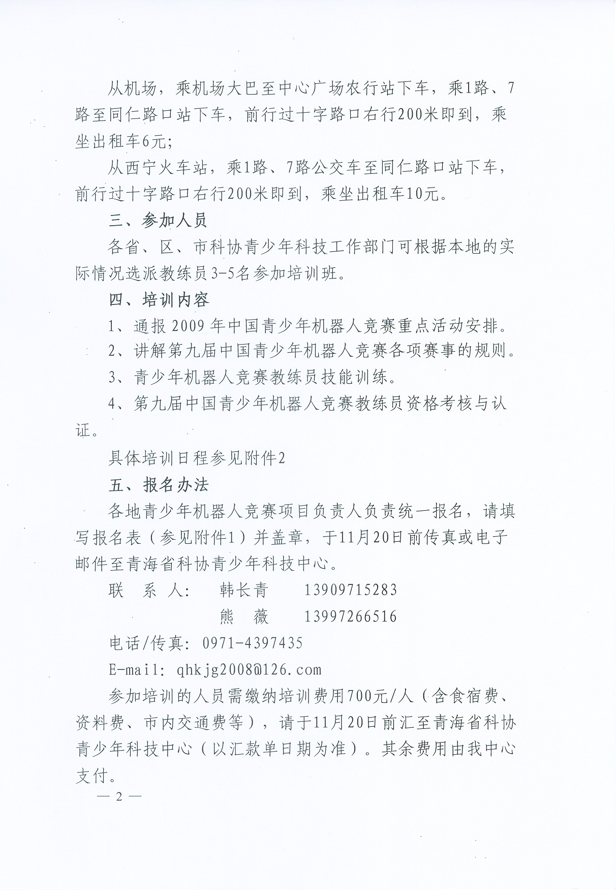 关于举办第九届中国青少年机器人竞赛教练员培训班的通知