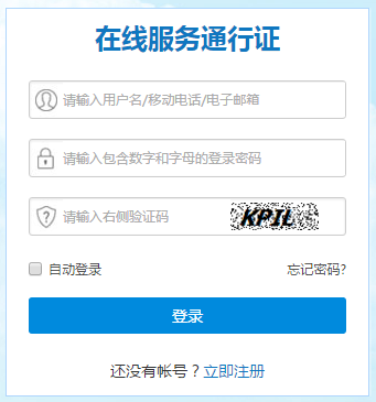 2.在线服务通行证中输入账号和密码、验证码点击【登录】按钮登录管理系统;点击【忘记密码】按要求操作可找回密码。