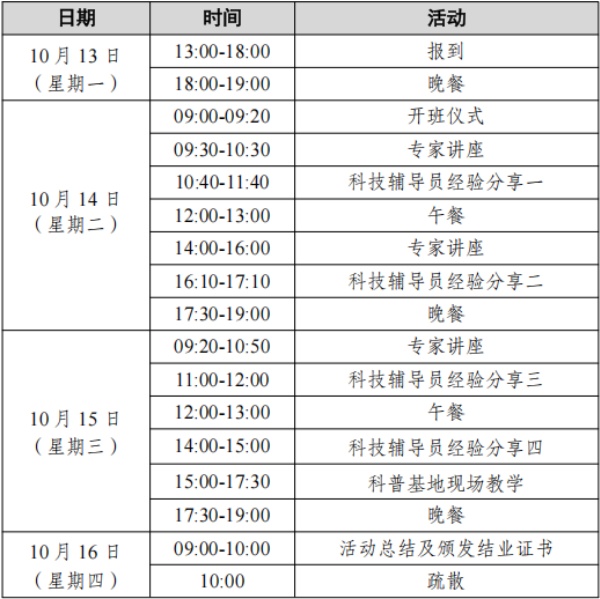 2. 科技辅导员专业能力提升:新时代科学教育政策解读、科技教育活动设计与组织策略、科技竞赛指导能力提升。