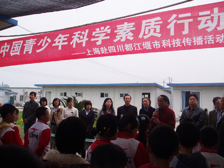 为实施《全民科学素质行动计划纲要》,探索青少年科学素质教育工作的新路,支持地震灾区青少年科普工作的开展,由上海市科协、四川省科协、上海市卢湾区人民政府共同主办的中国青少年科学素质行动——上海赴四川都江堰市科技传播活动,4月8日在都江堰市拉开了序幕。
