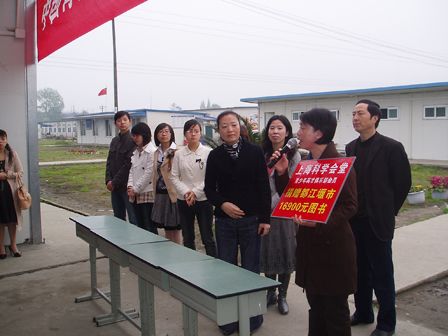 上午9时,在都江堰市塔子坝中学简易的板房教室前举行了启动仪式,都江堰市塔子坝中学高校长致词,上海卢湾区科学普及部王部长、都江堰市教育局文局长分别作了热情洋溢的讲话,上海市未成年人科学素质推广项目办公室陈红主任代表上海科学会堂青少年英才俱乐部向都江堰市捐赠了16900元的图书。四川省青少年中心、都江堰市科协的负责同志、上海科技传播活动的全体老师以及塔子坝中学的400余名师生参加了启动仪式。