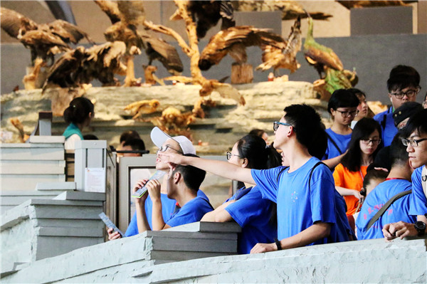 在参观过程中,有的营员流连于“生命长河”主题展厅,惊叹于生物进化的漫长过程;有的营员驻足于“缤纷生命”主题展厅,观察千姿百态的自然生物,聆听生命的思语;还有的营员醉心于“生态万象”主题展厅,体悟不同自然环境中生存的惊心动魄;几乎所有营员都认真参观“上海故事”主题展厅,在“沧海桑田剧场”见证气候与陆地变化,参观“暖阳明媚”的崇明东滩,感受脚下这片土地沧海桑田的自然流变。