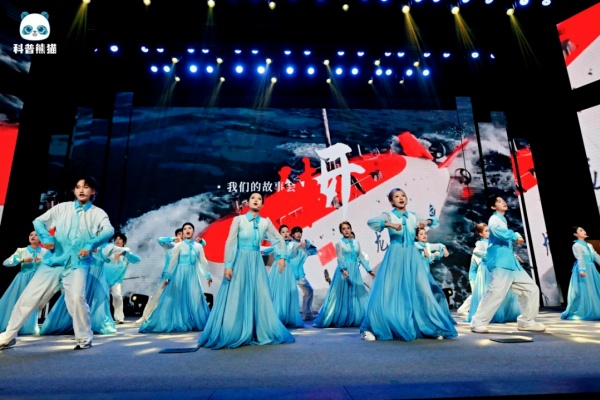 成都博物馆学术报告厅内座无虚席,随着情景歌舞剧《在未来等你》开场节目,观众被“拽”进一条时空隧道——“中国天眼”、神舟翱翔、C919穿云、AI大模型惊艳……硬核科技成果被少年们一字一句唱成押韵诗行。经典老歌与新派说唱无缝衔接,唱的是汗水,赞的是智慧;唱的是过去,盼的是未来。歌声落地,掌声如潮——2025年成都市全国科普月主场号角正式吹响。