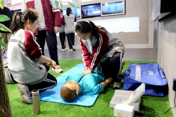 走进国防科技教育馆,聆听讲解员生动的讲解,感受祖国科技飞速发展、祖国国防建设日新月异,学生们的民族自豪感和民族自信心油然而生。期间还进行了救助体验。