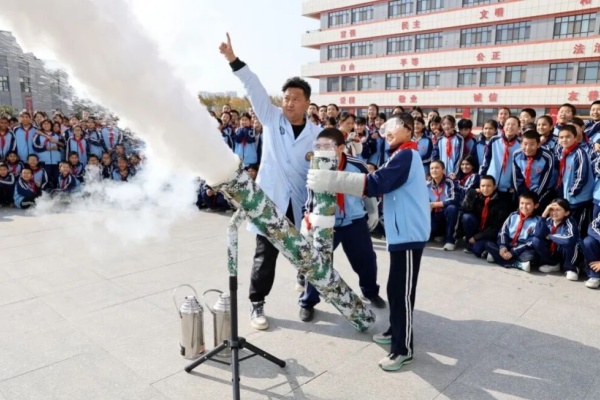 最让同学们兴奋的是气体炮和干冰升华实验。气体炮通过压缩空气产生的推力发射“炮弹”,生动演示了动力传递的原理;而干冰升华实验则利用固态二氧化碳(干冰)在常温下迅速升华,吸收大量热量,使周围空气中的水蒸气凝结成细微的水滴,从而形成如梦似幻的白色雾气,在展示物质相变(升华和凝结)这一物理过程的同时,也营造出震撼的视觉效果。
