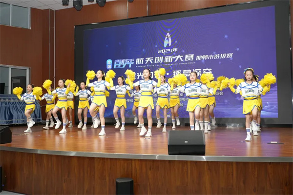 开幕式由王啸淳主持。邯山区开元小学的同学们以一曲啦啦操拉开了活动的序幕。丛台区教体局副局长王婷、省航天创新大赛组委会副秘书长王晓眠分别为活动致辞。丛台区连城小学的同学们表演了诗朗诵《航天颂》,市科协科普大篷车队的科普志愿者进行了人工智能机器狗表演。裁判员代表和参赛选手代表庄严宣誓后,市科协主席凌涛致辞并宣布比赛正式开始。