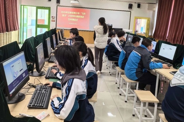 2月27日上午,兰州市2026年甘肃省青少年“飞天英才”计划学科潜质测试在三个考点同步启动。本次活动由兰州市科协组织,来自全市4所省级示范性高中的56名高一学生,分别在兰州市第58中学、兰州市第61中学和兰州西北中学三个测试点,参加生物、计算机、物理、数学、化学五大学科的潜质测试,角逐人才培养计划的“入场券”。