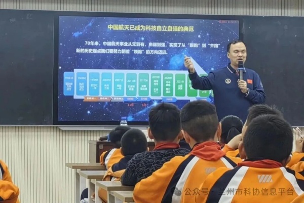 4月9日,兰州市科协特邀金城首席科普专家、中国航天科技集团五院510所高级工程师雷占许,走进西固区福利三小,为师生带来一场《中国航天的星途探索》专题科普讲座。