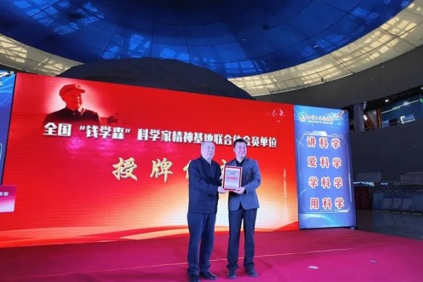 随后,钱永刚为石嘴山市科技馆授予全国“钱学森科学家精神教育基地联合体会员单位”铭牌。