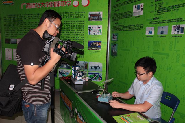 为展示广西中小学生发明创造示范单位(以下简称“示范单位”)建设成效,引导全区中小学生在发明创造领域发挥聪明才智,拓宽思维,本届科学节设置了广西中小学生发明创造成果宣传展区,邀请了广西师范大学附属中学、柳州市文惠小学、南宁市第一中学等作为示范单位代表带来了学生们的科技创新作品,作品构思新颖独特,设计精巧,日常生活中获取灵感,注重解决生活中的实际问题,且具有一定的研发和应用价值,如基于蓝牙技术设计的能用手机控制房屋内开关的“蓝牙控制系统”;通过触控系统,“自动感应光线和坐姿的台灯能根据学生坐姿和距离发出提醒功能的,“用户自定义模块化智能灯光控制系统”能对家庭门窗、灯光进行控制的等优秀的发明创造作品。现场的光盘气垫车竞技比赛、手工自制悬浮球及与电脑拔河的脑电波大挑战等精彩而有趣的互动活动也吸引了大批观众。
