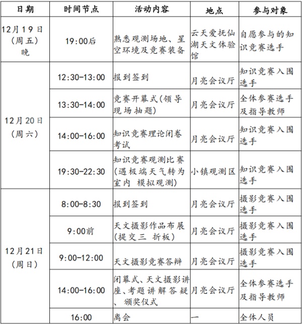 云南省青少年天文知识竞赛组委会对上述活动拥有最终解释权。
